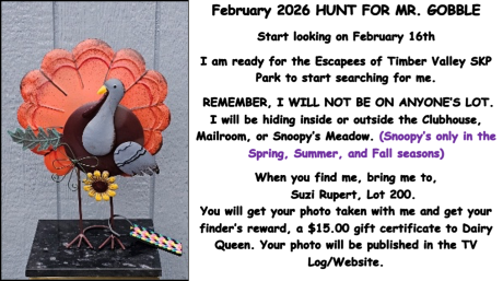 The purpose of the Timber Valley Website, (timbervalleyskp.com) is to inform members and visitors of pertinent Park news, events and items of interest. We will prioritize contributions from Members. We will, at all times, strive to be neutral in all affairs and promote unity and the well-being of all Park Members.In order to meet the expectations of Members, there are some topics that will not be posted: