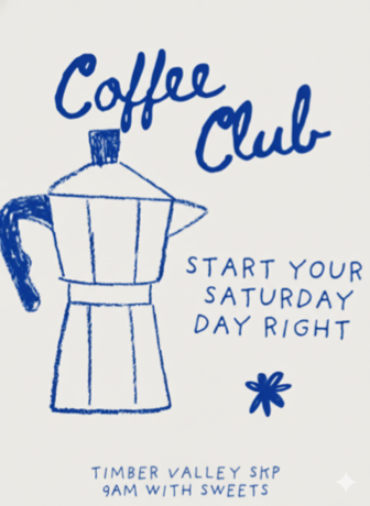 Our menu may not look exactly like the above but the Saturday Morning Coffee Club will serve some really good sweet treats including maybe donuts, muffins, breakfast bars and more.